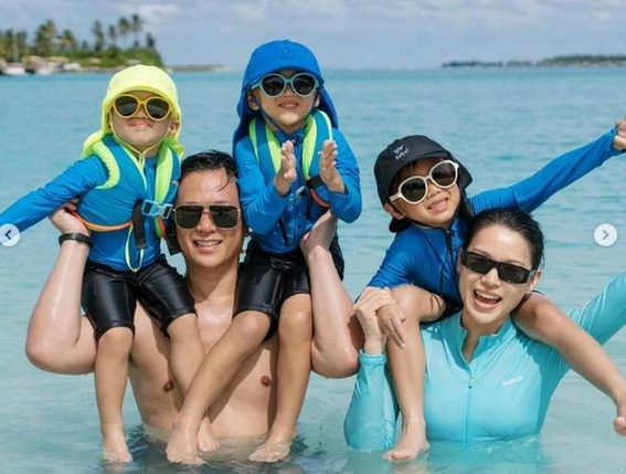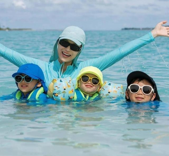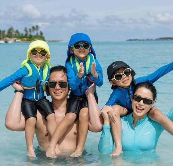 昨天热搜上那张一家五口的度假照,阳光刺眼,海浪温柔,三个儿子笑闹着扑向海浪,48岁的丈夫李乘德半裸着上身,肌肉线条在沙滩上划出一道健康而坚实的弧线。