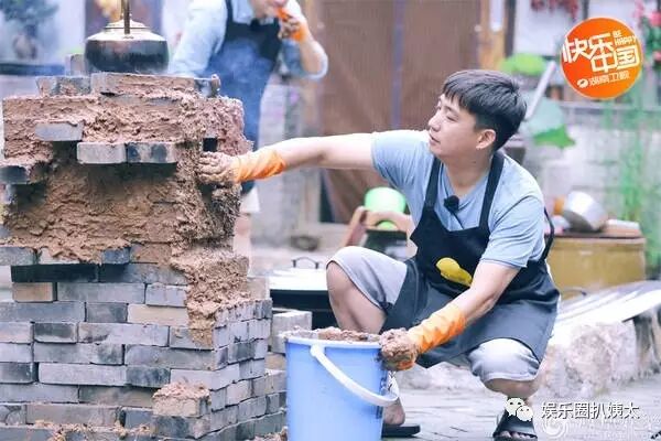 最近参加真人秀,还露了一把用砖头现搭土灶的功夫。