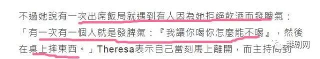 她表示称,由于人生地不熟,为了能够多获得一些演出的机会,不得不出席一些饭局和酒局,没想到很多人的素质非常差劲,不但强行灌酒不说,如果你拒绝的话,对方就会给你脸色看。而且从中午开始就有类似的饭局,不想应酬又很难找理由拒绝。