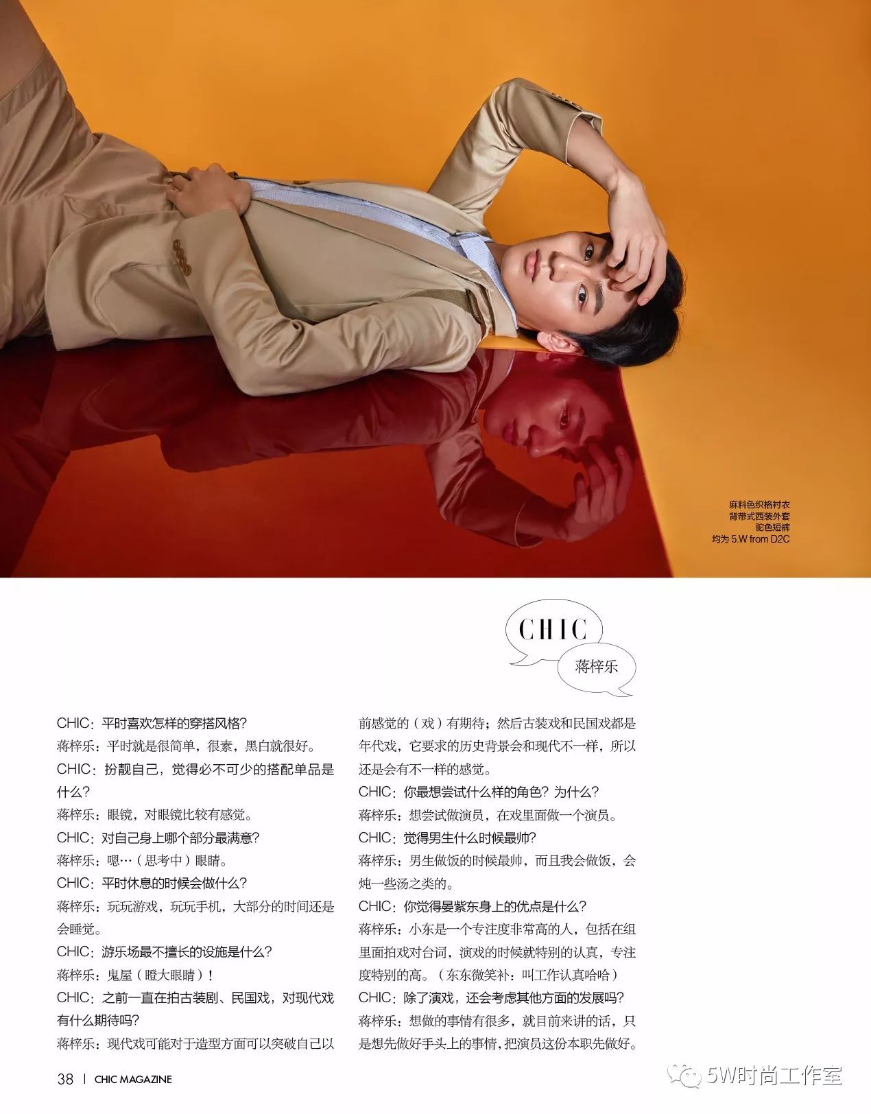 也参与《芭莎男士》《CHI Magazine小资》等时尚杂志的拍摄,