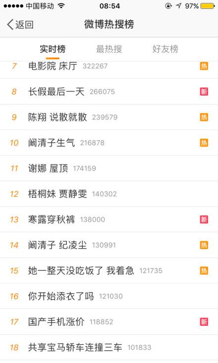 现在,有了男朋友的阚清子终于靠自己上了一次热搜,微博评论也是嗖嗖嗖涨。