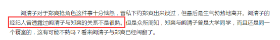 谁知最后官宣的女主却是郑爽~之后阚清子的经纪人更是透露,阚清子与郑爽的关系不是很熟悉,同一个宿舍都能不是很熟,额,我信了。