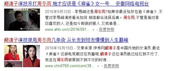当时的周冬雨还不是现如今风光无限的影后,阚清子演技吊打周冬雨的通稿一时间满天飞,微博热搜也是飞起,直接把阚清子列为了该剧女一号,被周冬雨粉丝质疑买水军,一时间风头大盛。