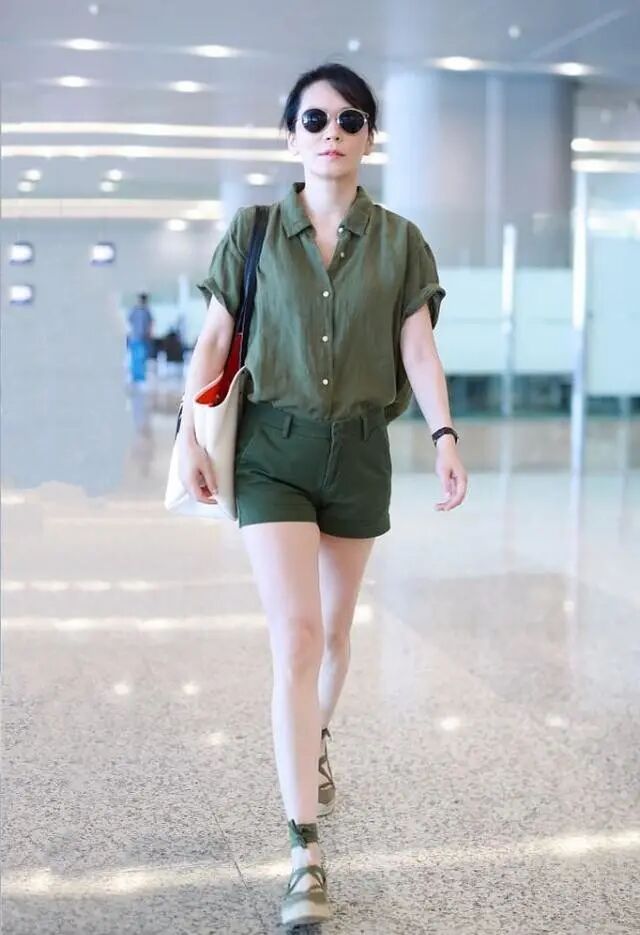 军绿色的短袖衬衫,经典大方而且显得具有中性感,不管是男士或是女人们穿这个颜色都是比较适宜的。