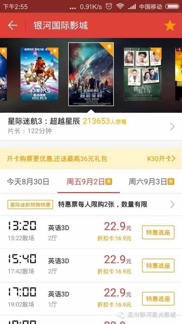 每周三:“卡友日”凡是持会员卡购票送价值“6”元可乐一杯。