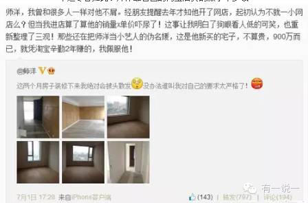 演艺圈并没有实现师洋的明星梦,反倒让他看透很多东西:“我在做艺人的时候就经历过潜规则,比如刚谈好的戏,就被某个‘官二代’抢去角色,而开网店不用勾心斗角,顶多就是收到一些差评。”