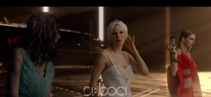 在黑暗宫殿里,Snake Queen高高在上,整个宫殿地上爬满了蛇,这一幕讽刺那些曾经在她社交账号下刷蛇的Haters
