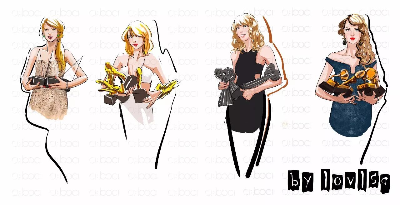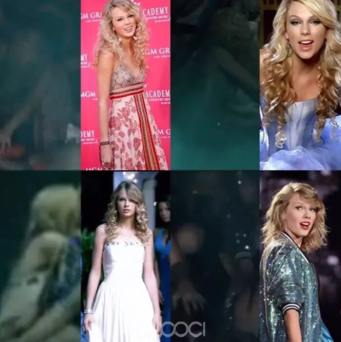 这些拼命在向上爬的泰勒的装扮都是曾经在MV、巡演、红毯的经典造型。