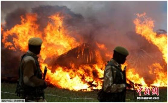 肯尼亚销毁105吨非法象牙,总统亲手点火 © 中新网
