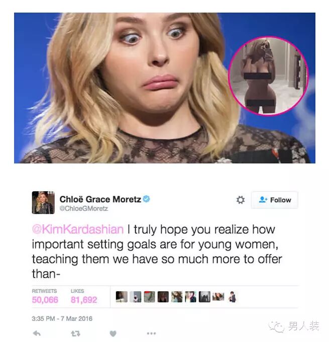上面这三位明显是把卡戴珊骂急了,因为她马上就在Twitter上回骂了一些毫无营养的推文,比如讽刺笑星Bette Midler年岁这么大,竟然还在“睡觉时间玩Twitter。”还说没人知道Chloe Grance Moretz这姑娘是谁……现在10后吵架都比这个情商高了。