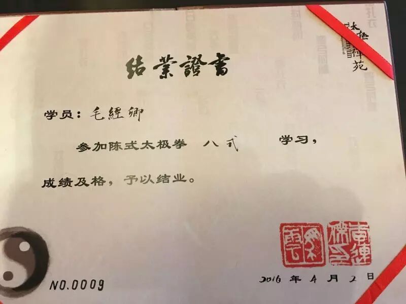 只要考试通过,你就能获得由马云、李连杰背书的太极禅苑定制的结业证。 每一本证书都有唯一编号,将来在网上能查到。