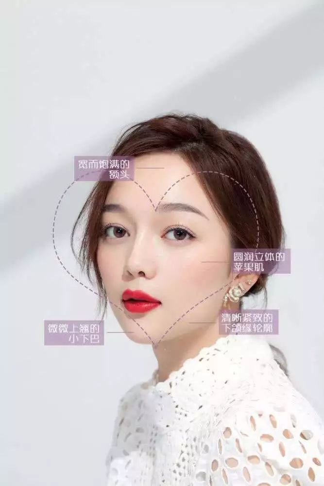 同时,它还必备两个黄金数据:发际线到眉毛、眉毛到人中、人中到下巴的距离比例为1:1:0.8,同时还有丰满的额头,饱满的颧骨,富有弹性的脸颊及小下巴。