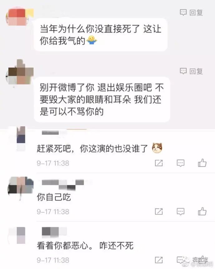 “当年为什么你没直接死了”、“看见你都恶心。咋还不死”
