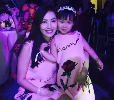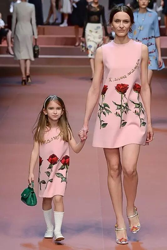 与女儿的亲子装也来自于DOLCE&GABBANA,并且还是秀场款。