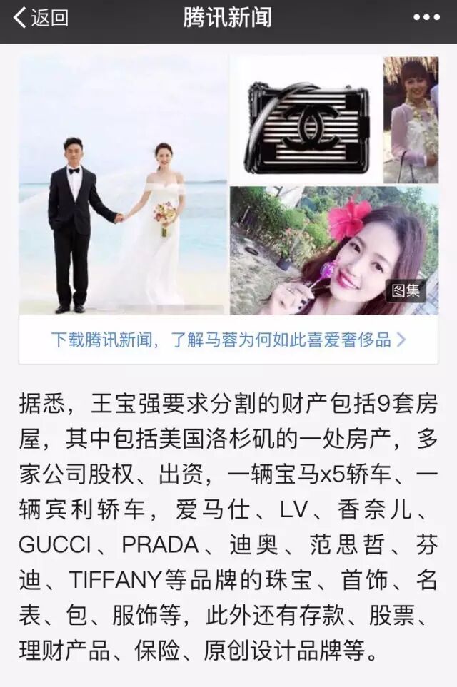 我们都看到宝宝的主张判决了,里面提到了9套房,一套位于美国洛杉矶,据说,这九套房产均在马蓉和马蓉的父母名下,还有传闻,马蓉父母为了获得在北京买住房的指标,曾经假离婚,又跟北京人假结婚......现在,王宝强甚至不知道很多房产的具体地址,可以想象这些房子是怎么买下来的.....