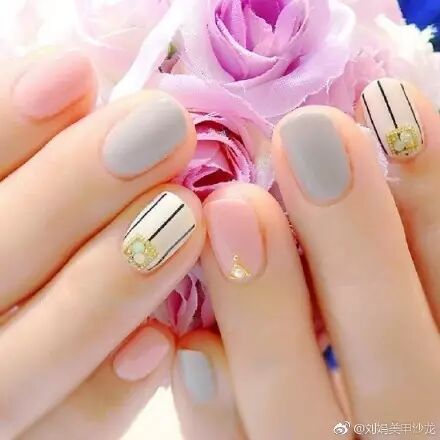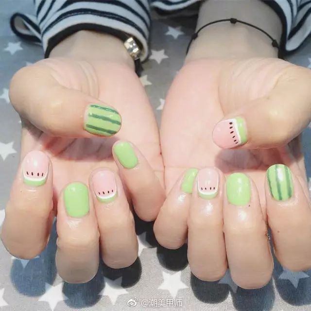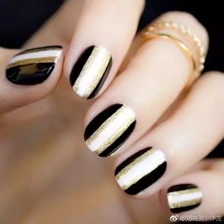 当竖条纹应用到指尖也能取到异曲同工的效果哟!