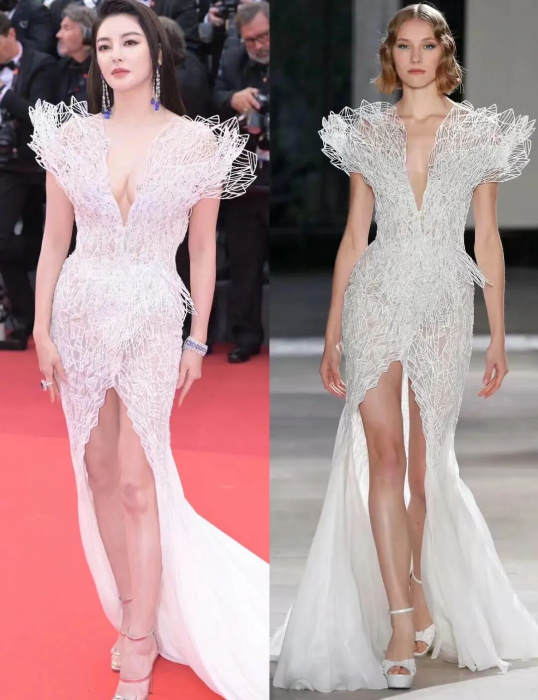 巩俐红毯灾难,竟然没人敢说? 我是艾小羊 内地女星 2023-05-19 17:35:24 391 创作不易,用心坚持,欢迎请BaGua喝几杯爱心咖啡!打赏并支持本文 打赏并删除本文 这几天的快乐是戛纳红毯给的。虽然咱们没啥电影作品参展,但去走红毯的明星不少。除了明星,还有很多网红也被品牌方邀请去了,我一个朋友甚至还帮忙接待了两个,总结得十分精辟:电影节缺钱,卖名额回血。哪里有需要,哪里就有交易;何况女明星争奇斗艳一直是娱乐圈巨大的看点,先说最搞笑的红毯,今年凭《狂飙》一路飙红的大嫂高叶。她参加的是《怪物》首映红毯,穿了条Georges Chakra23春夏系列礼服裙,搭配Tasaki珍珠,这种明艳的礼服,以往属于张雨绮、范冰冰,这次高叶是人穿衣服,把很难穿的颜色跟款式都给撑住了。万万没想到长了一张丰满脸的高叶这么瘦,裙子竟然大了。临时改了一下,没缝好,被眼尖的围观群众发现了。#高叶礼服开线#不小心成了一个热搜词条。本尊亲自回复,说领口很丑的那几针,是自己缝的,希望大家当作看不见,毕竟大嫂也要面子。不得不说,高叶是有点搞笑天赋在身上的。这条裙子很大,布料起码有十几斤重,大嫂上台阶的时候,身后像坠了个秤砣,是被壮实保镖硬生生地拽上去的。红气养人是娱乐圈颠扑不破的真理,以前我只觉得高叶长得有辨识度,从没觉得她有多美。这次真的get到了大嫂的红气“虽晚但到”,外网的生图皮肤紧实、轮廓也不错,没有女明星常见的肿胀感。35岁第一次走上戛纳电影节红毯的高叶,自信、明艳、白得发光,有种80年代港风美人的复古美。蓬勃的绿色与这些张牙舞爪的褶皱,被她野性的红唇彻底驯服了。唯一不怎么搭的是首饰,珍珠太过温婉,不衬这么野的裙子。“乡村大舞台,狭路相逢绿者赢”,张小雨竟然把这个规律忘了,是有点糊涂。10年前的2013年,张雨绮穿深V绿裙亮相戛纳红毯,虽然国内时尚界对这个造型褒贬不一,但外媒一致赞美,称她“性感中带着娇贵,像去赴宴的优雅名媛”。如今看来,这个造型不管你是否喜欢,都要承认它的辨识度很高,让人过目难忘。明艳风一直是张雨绮的拿手好戏。这次戛纳红毯,她第一套礼服走的也是明艳风。大面积、反光的亮橙色面料覆盖在黑色千层纱上,脖子上的那朵绢花还上了热搜。因为张雨绮走着走着,一高兴把花从脖子上拉下来扔给了观众;被网友吐槽是义乌小商品市场两块钱一个批发的。这套礼服从前面看,花瓣似的胸部设计因为缺乏包裹性而制造出了下垂感,不小心动一下,还造成高低不一样的视觉误会。从后面看,层层叠叠的纱与布堆在一起,缺乏造型感,像小镇市集上卖窗帘布的。发型也做得很随意,距离20年前的春晚民歌手,就差一个起飞的发胶刘海了。张雨绮最近几年脸部时不时出现的膨胀感,在这个造型的加持下显得更加突出。张雨绮跟高叶同年,论先天基础,她肯定比高叶强太多,但以美出道的女明星有时候可能过于想要留住青春,反倒弄巧成拙,让整张脸因过度饱满而显得疲惫。第一套明艳风翻车后,第二套3D打印的礼服高级多了。虽然有网友评价“看上去很扎”,但完全不妨碍它将张雨绮花瓶式的身材衬托得玲珑有致。看动图更有感觉。胸前蓬勃的花叶随着步伐的移动而颤抖,科技感十足,下面穿条紧身裤就能飞檐走壁,神奇女侠可以考虑一下。比较拖累的是这个尾巴,不仅有点无处安放,而且与上半身的昂贵科技感也没有很好地融合,白纱显得太便宜了。我特意去查了一下这件礼服的秀场图,下面的鱼尾刚刚好,白纱的质感硬挺一些,比张雨绮的这件更像美人鱼。可能品牌方根据戛纳红毯的需要,临时为她修改了裙摆设计。红毯定位照网友发现张雨绮的鞋子挤脚,整个小脚趾都在外面。巩俐说过,每次走红毯都是提着一口真气,走完人整个松下来,必须马上换鞋。张雨绮这个脚趾头,看着都疼啊。这件礼服不看下半身,上半身的精修图用徐志胜的话说是“绝美”,首饰配得也好。萧邦蓝宝石高定戒指跟耳环,又大又闪。这个牌子之前是巩俐红毯御用,今年她戴了卡地亚。红毯的另一个大热门是范冰冰。当年范爷风头正劲时,被万达公子嘲笑为没有作品却热衷于红毯艳压的“毯星”,她豪气回怼。如今两人都夹着尾巴做人,谁也不用嘲笑谁了。范冰冰这次的两套行头,走的还是“艳压”风。一套是卜柯文设计的中国风战袍,老虎与绿竹元素,正读是“虎竹”,寓意“护主”;反读是“竹虎”,寓意“祝福”,配上范冰冰这些年屡屡试水复出的野心,有人直接管这套战袍叫“猛虎出山”。这套衣服与范冰冰当年在戛纳一战成名的龙袍,以及后来的鹤袍、瓷娃娃造型算得上是血脉上的近亲。连被很多人嫌弃不好看的发型,都完美复刻了11年前的瓷娃娃造型。这条裙子元素复杂,巨大的裙摆比范冰冰之前的那几条更压身高,到底好不好看是见仁见智,但范冰冰确实撑住了这种复杂的审美。巨大的祖母绿戒指跟耳环,不知道是不是范冰冰这几年水逆,也迷信了“要想生活过得去,身上就要有点绿”。外网的生图脸有点僵,可能太久没有战红毯,气场也不如以前。精修图很美。6年前说“武月很开心”的那个范冰冰,好像又回来了;如果时光倒流,她咬碎钢牙也不会说这句话。范冰冰这套虎袍,被指撞衫了壮骨麝香止痛膏,虽然不是百分百一致,但确实有那么几分神似。参加电影节官方酒会的另一套礼服,又被网友戏称撞衫金丝皇