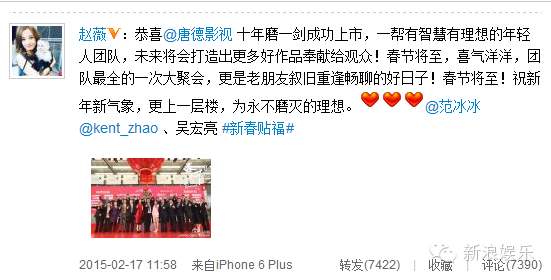 我范爷也是唐德影视的股东之一,年初唐德上市时,小燕子和金锁还上演了一把世纪同台!