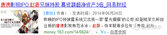 粗略估计,唐德上市后,赵薇与其哥哥持有唐德影视的股份市值超过3亿元!!!