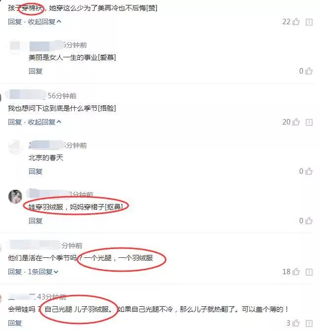 但是对于陈妍希这次的穿着引网友热议,儿子穿羽绒服 棉裤,妈妈穿裙子光腿,他们活在一个季节吗?甚至网友哦吐槽:”她 会带孩子吗?“,虽然北京现在是春天,这穿着一个就是在过夏天一个在过冬天啊,即便陈妍希不冷,那小星星还不得热翻呢?热了出汗是会感冒的,小孩子还是要多注意呢!