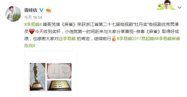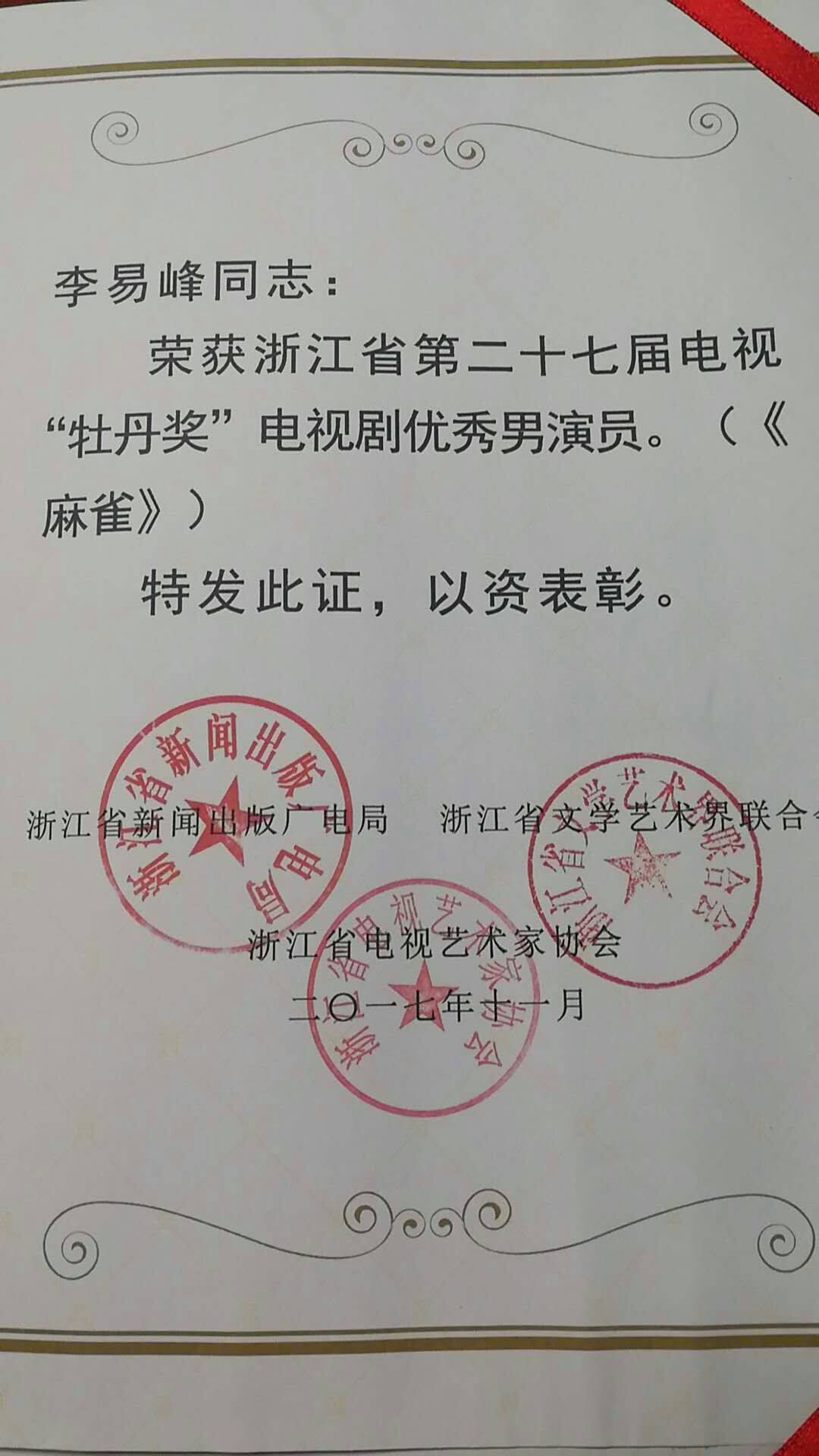 峰哥凭借《麻雀》荣获浙江省第二十七届