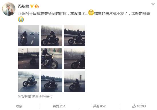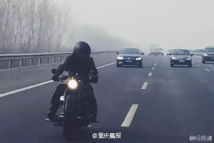 @冯绍峰 晒出一组在高速骑摩托车的帅照