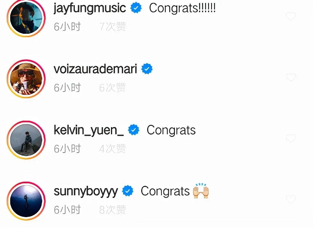 更尴尬的是许多圈内好友也在评论里送上祝福,其中包括歌手郑融、冯允谦,还有王阳明、朱鉴然等等,加起来有数十位之多。