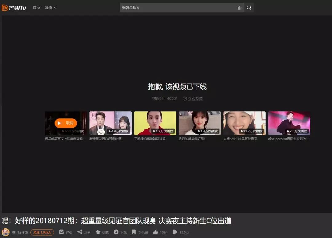 此外,在芒果TV 12号播出的这期节目也被删了,原因不明。难道是因为……