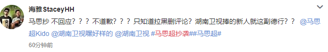 而在节目中播出后,很多粉丝在马思抄的微博底下留言要个说法时,在根据网友评论介绍得知,他居然心虚到去删除部分要说法的留言,难道是做贼心虚???