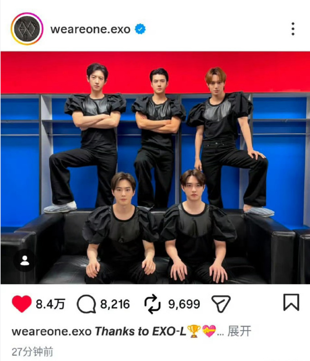近期,EXO官方释出成员们最新造型,标志性的黑色泡泡袖设计重现舞台,引网友们热议。SUHO、朴灿烈、D.O.、KAI、吴世勋身着纯黑色泡泡袖上衣,搭配利落裤装,通过硬朗廓形与柔美袖型的碰撞打造颠覆性美学。