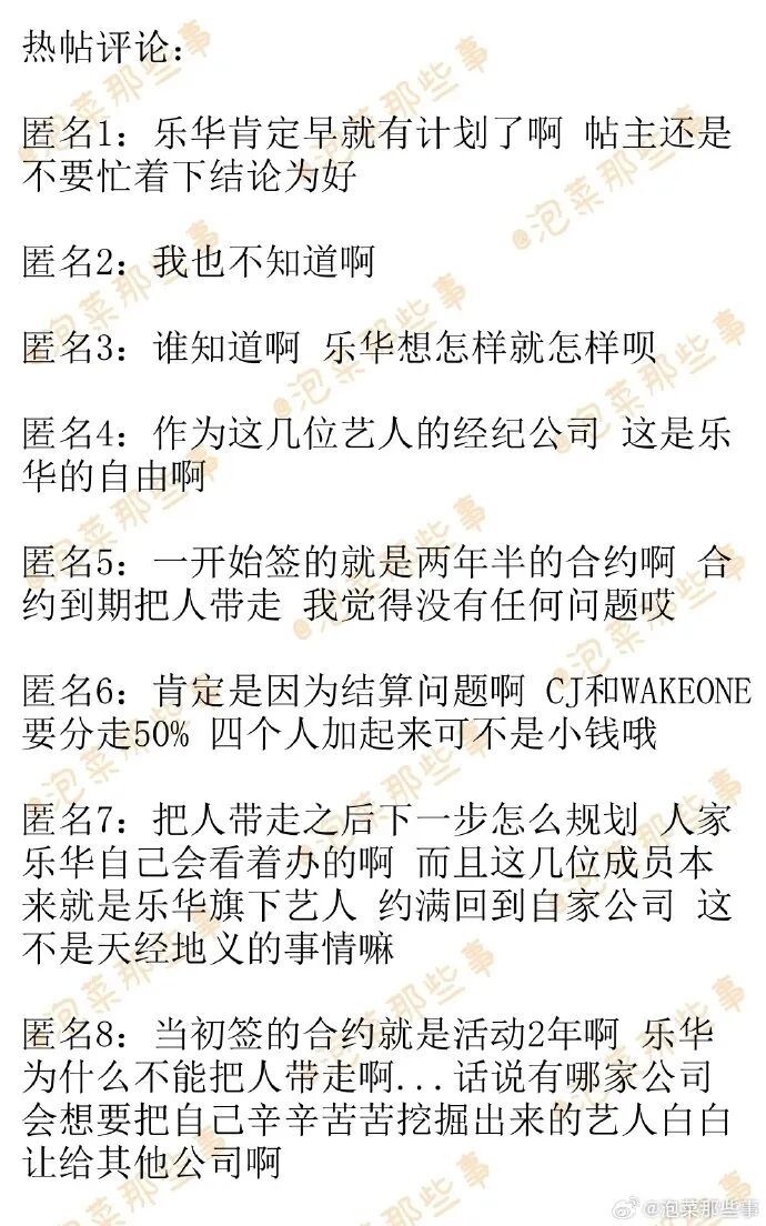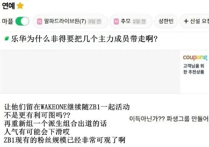 有网友发帖质疑乐华为什么非得要把ZB1主力成员带走,ZB1现有的粉丝规模已经非常可观,让他们留在WAKEONE继续随ZB1一起活动更有利可图。相反,再重新组一个派生组合出道的话,人气有可能会下滑。