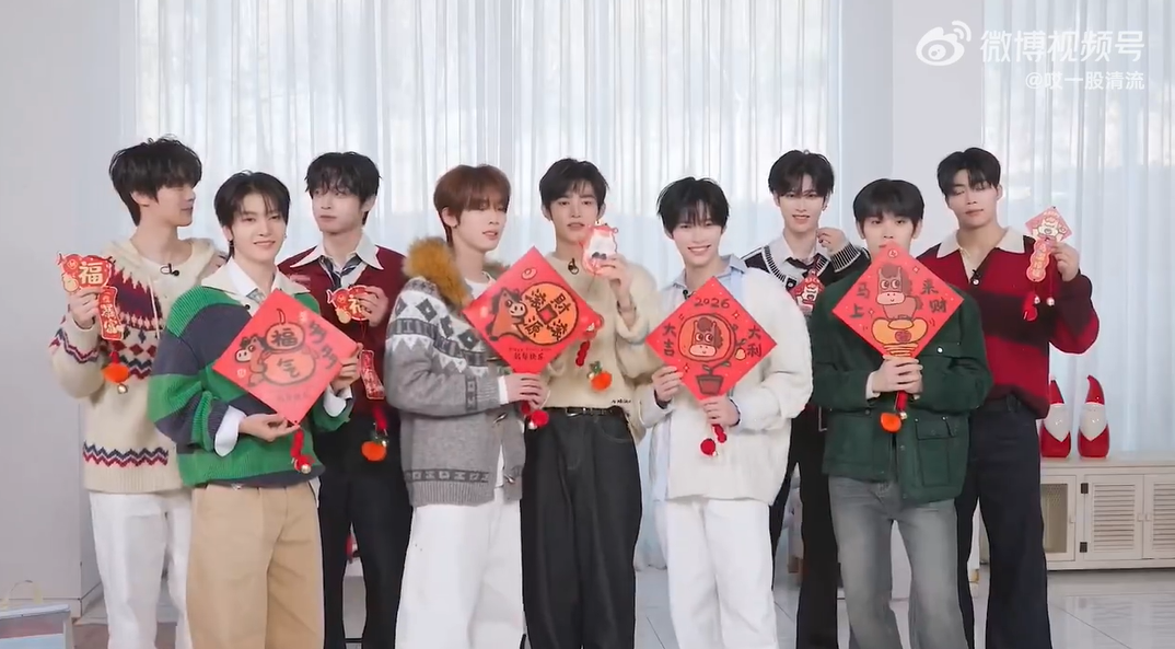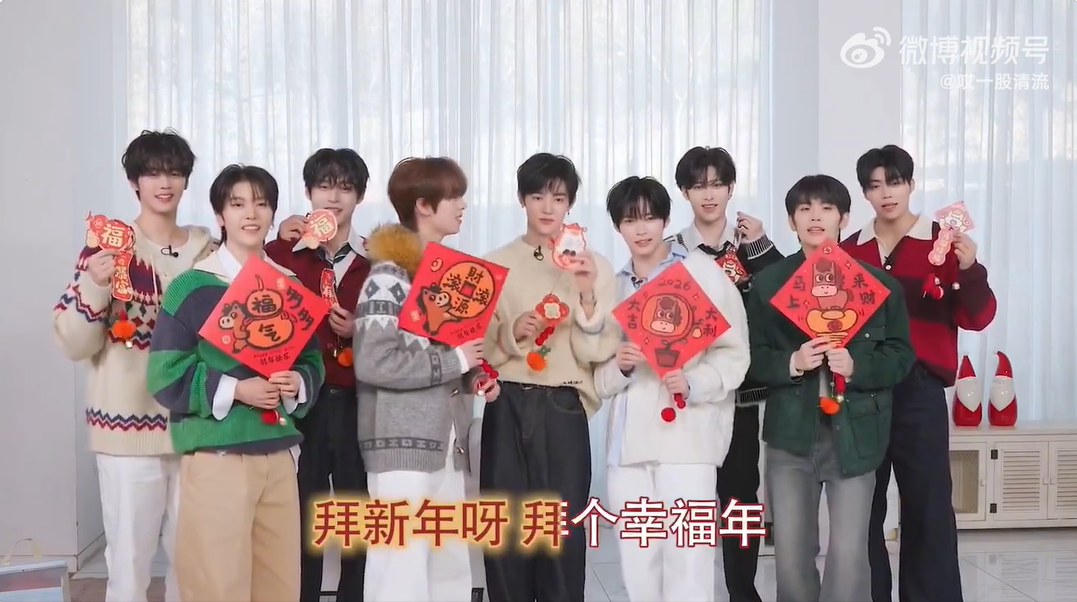 章昊刚一句一句地教ZB1队友们演唱《拜新年》,并一起拍摄了春节祝福视频,给粉丝们拜年。
