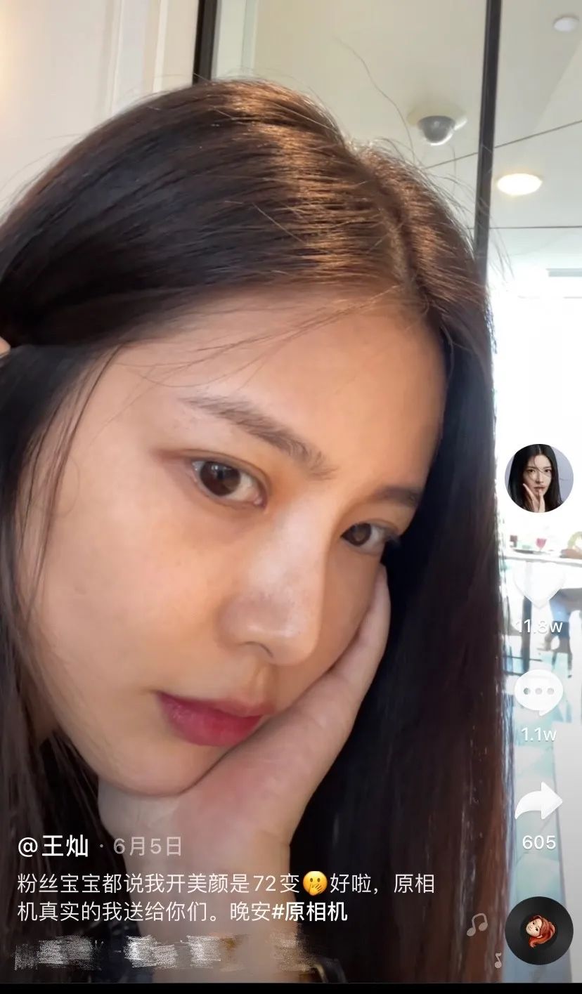 王灿对自己的外貌一直是一种自黑的方式,前不久她才发了自己无滤镜无美颜的素颜照,虽然有些黑眼圈皮肤有点黄,但能看出来底子蛮不错的,女生敢晒素颜照也是真勇了!