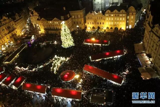 图为2014年布拉格老城广场拍摄的圣诞市场全景。