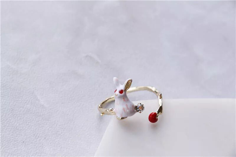 一眼就被这只小兔子给迷到了,太可爱了吧~小小的兔子立在指环上,红眼睛看着像发光似的,头顶的长耳朵也可爱得犯规,十分有雀跃感。