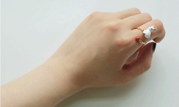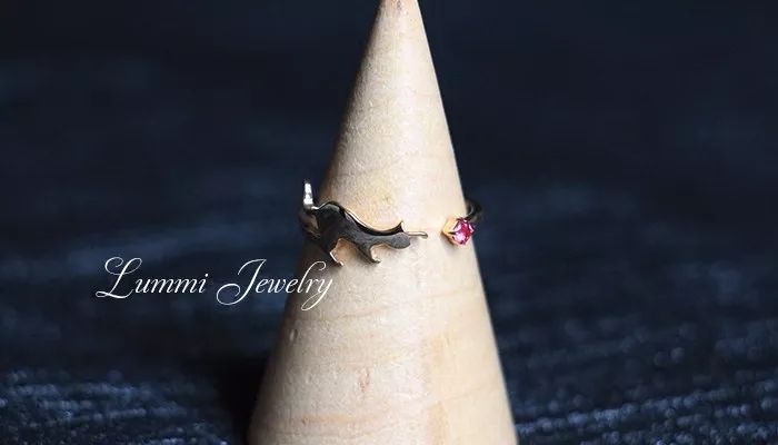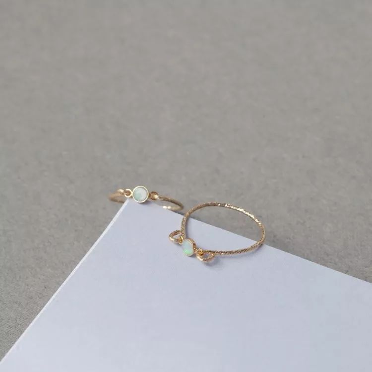 说到小动物,自然少不了可爱的猫猫狗狗。这一只猫耳款乍一看很简单,但很耐看。我也很喜欢这样小巧的质感,可以衬托得手指秀气。中间乳白色的欧珀石点缀也是我的心头好,淡雅又清浅。