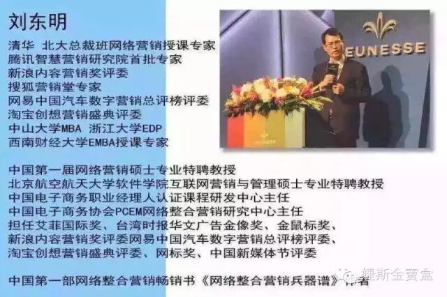 刘东明(中国等一部网络整合营销畅销书作者)在婕斯大会上的照片,他说道:“交互式营销,到目前为止,唯一把这种模式落地并成功的公司,全球只有一家,即:美商婕斯,没有之二。”
