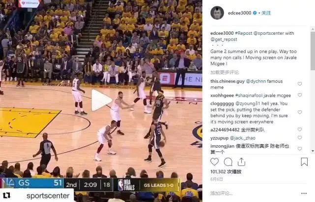 在总决赛骑士同勇士交手时,陈冠希坚定不移站到了骑士这边,他曾在社交媒体发视频控诉:“第二场的胜负就在那一回合。有太多的犯规没吹!贾维尔-麦基的移动掩护!”