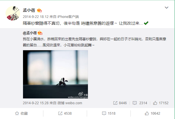 “在事业上,因为我一句话暂时放下自己的公司,去接触从未接触过的行业,给我策划80余场演唱会;在生活中,无条件包容我的脾气。”