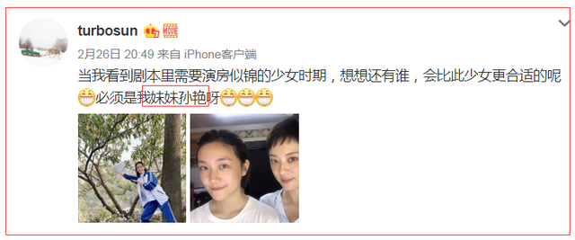 如今的孙艳元气满满,她成了一个风一样自信的女孩,不同于姐姐,她拥有一个完整的家,还有姐姐和姐夫这样的演技派,她的未来可期。