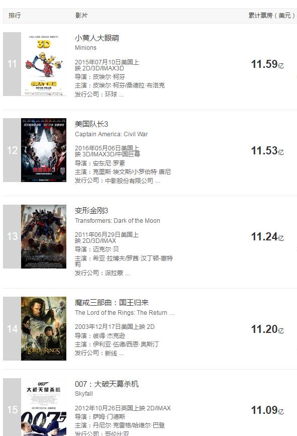 排名11-15名电影: