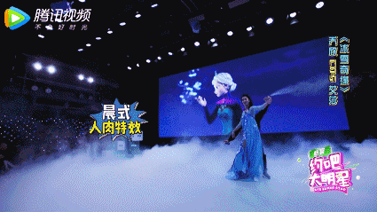 ▲最新一期节目中她化身《冰雪奇缘》里的Elsa ,在云雾中来去自如。