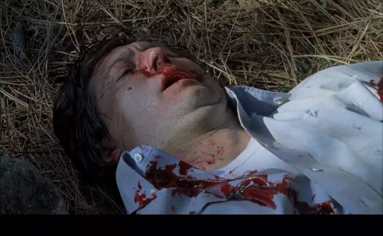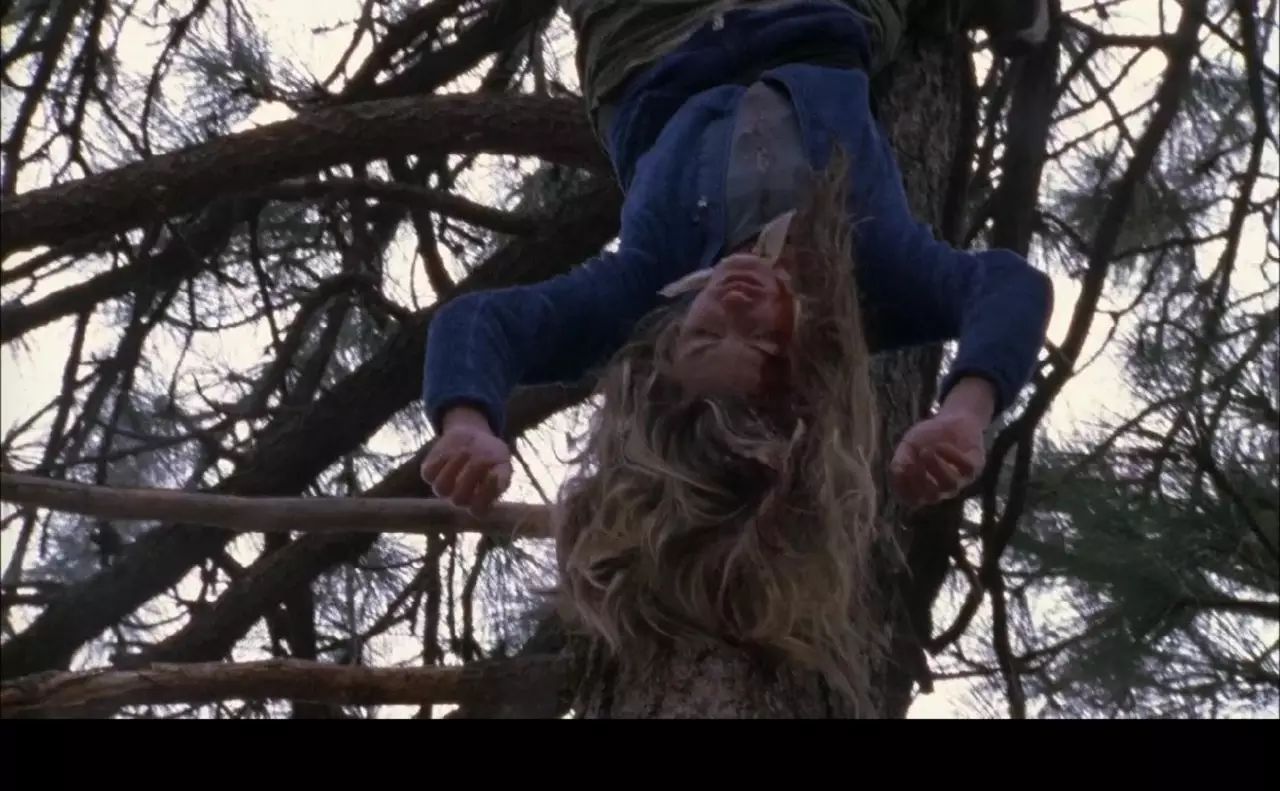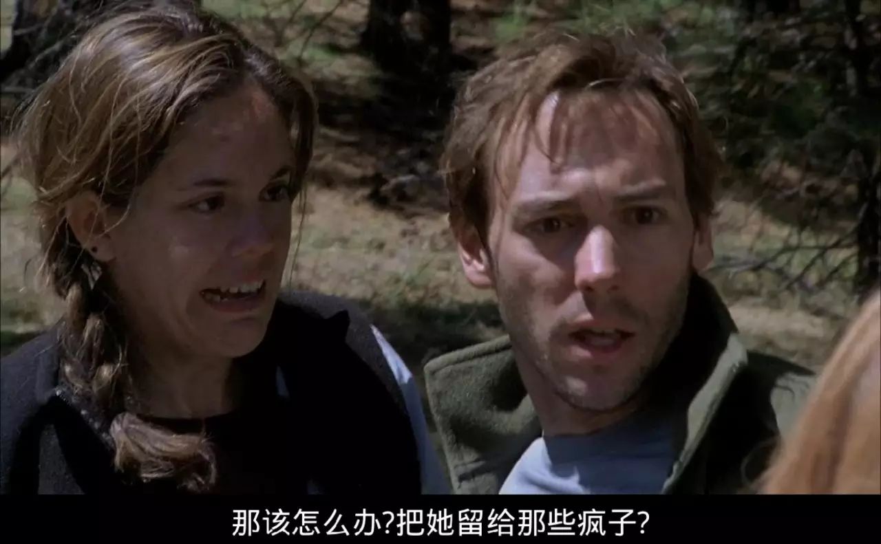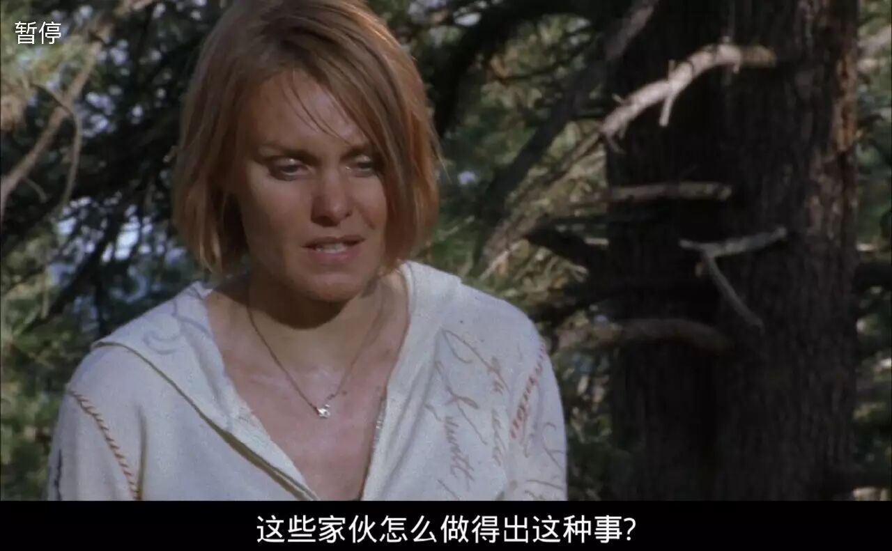 ▲ 容易杀的猎物没意思,趁着夜色俩兄弟干了一件他们觉得有意思的事儿——回到杀人现场,把已经死去的那对夫妻挂在了树上,鲜血滴在了Emily的脸色,大家才看见悬在半空中的两具尸体,他们只是在错误的地点出现在了错误的地方,前一刻还在抱怨带的东西太多、想着一会儿玩什么游戏,此刻就成了冰冷僵硬的尸体,何其冤枉。一辈子生活在森林里的护林员妹子,可能此生再也忘不掉这个画面,野兽再可怕也比不过人心。
