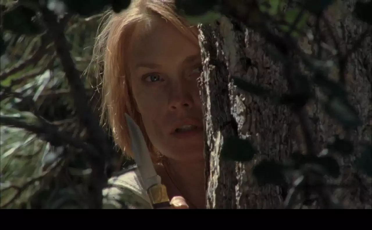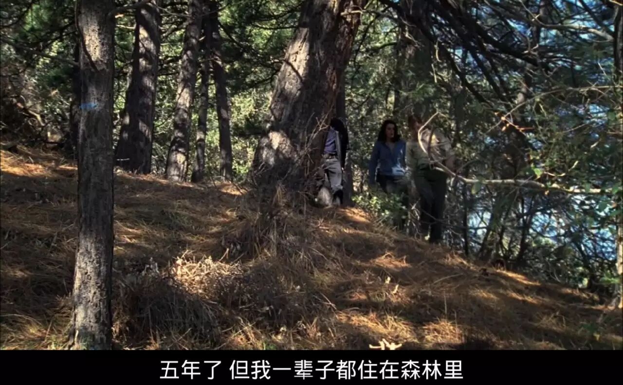 ▲ 她俩藏了起来,女主紧紧攥着手里的匕首躲在树后面看着凶手,她让另一个人丢了树枝声东击西,结果另一个姑娘走了出去被那个弟弟发现,一箭丢了性命。
