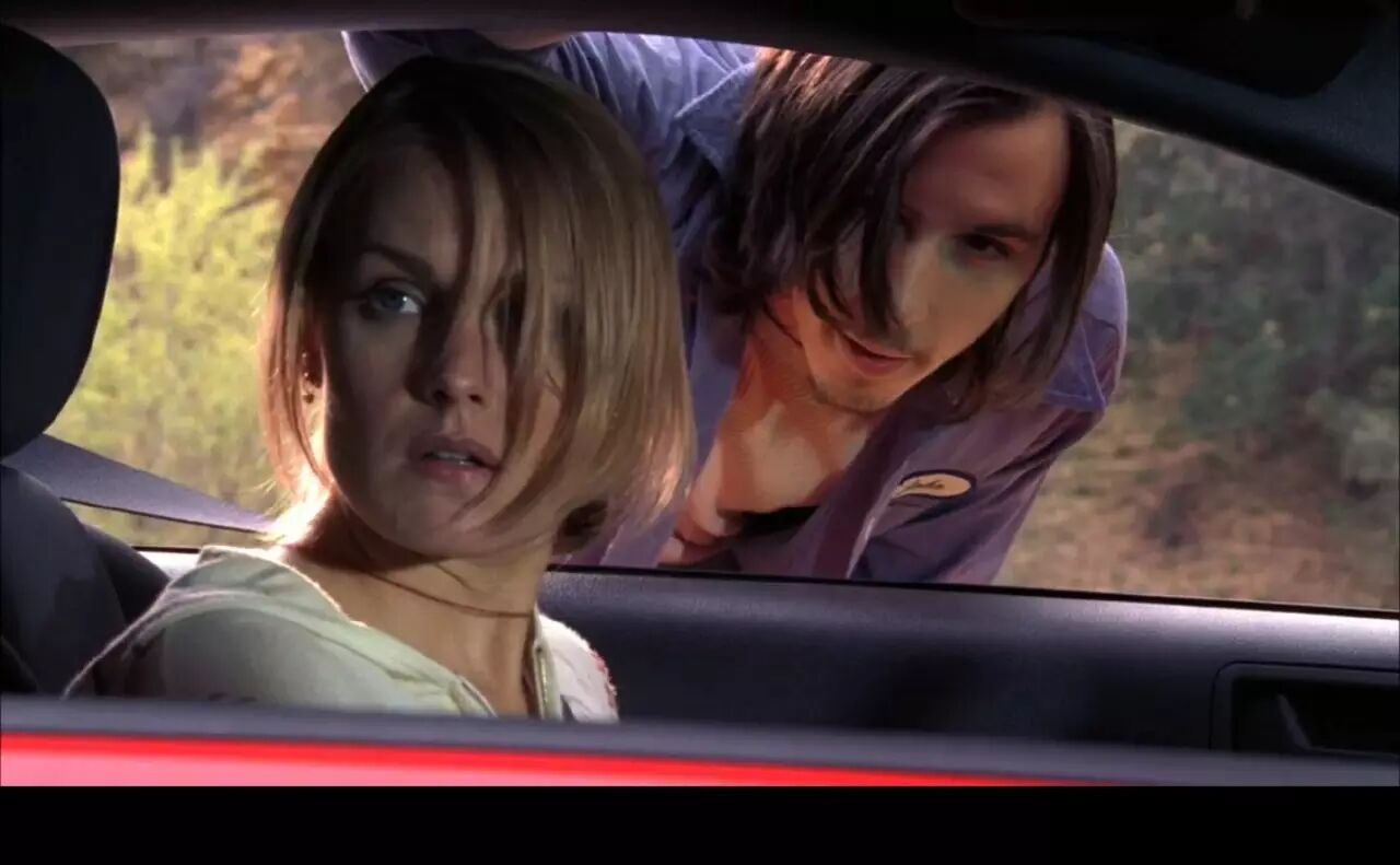 ▲ 这不么,走到这儿女主的车没油抛锚了,这深山密林里的公路还没有信号,电话打一半就没声音了,然后俩兄弟出现了,一边儿一个趴在女主的窗户上阴森森地问“需要帮忙吗小姐?”