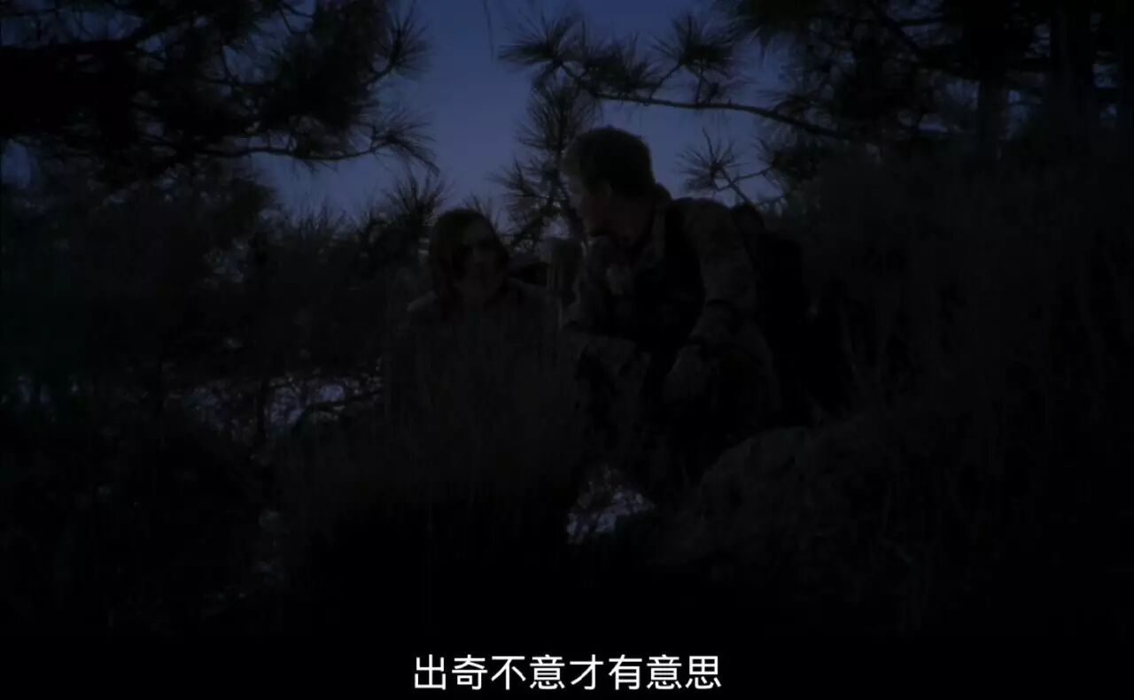 ▲ 夜幕降临,搜救工作不能在夜间进行,不然连搜救的人员安全都无法保证了。Emily都不敢想象女主现在在林子里是如何度过的。还活着的三个人挤在一起取暖,凶手就在不远的地方观察着一无所知的他们,弟弟想此刻就解决了他们,可哥哥觉得,这么容易下手的时候反倒是没什么意思,就让他们这样战战兢兢地过一晚上,第二天再继续,才是真正的FUN。