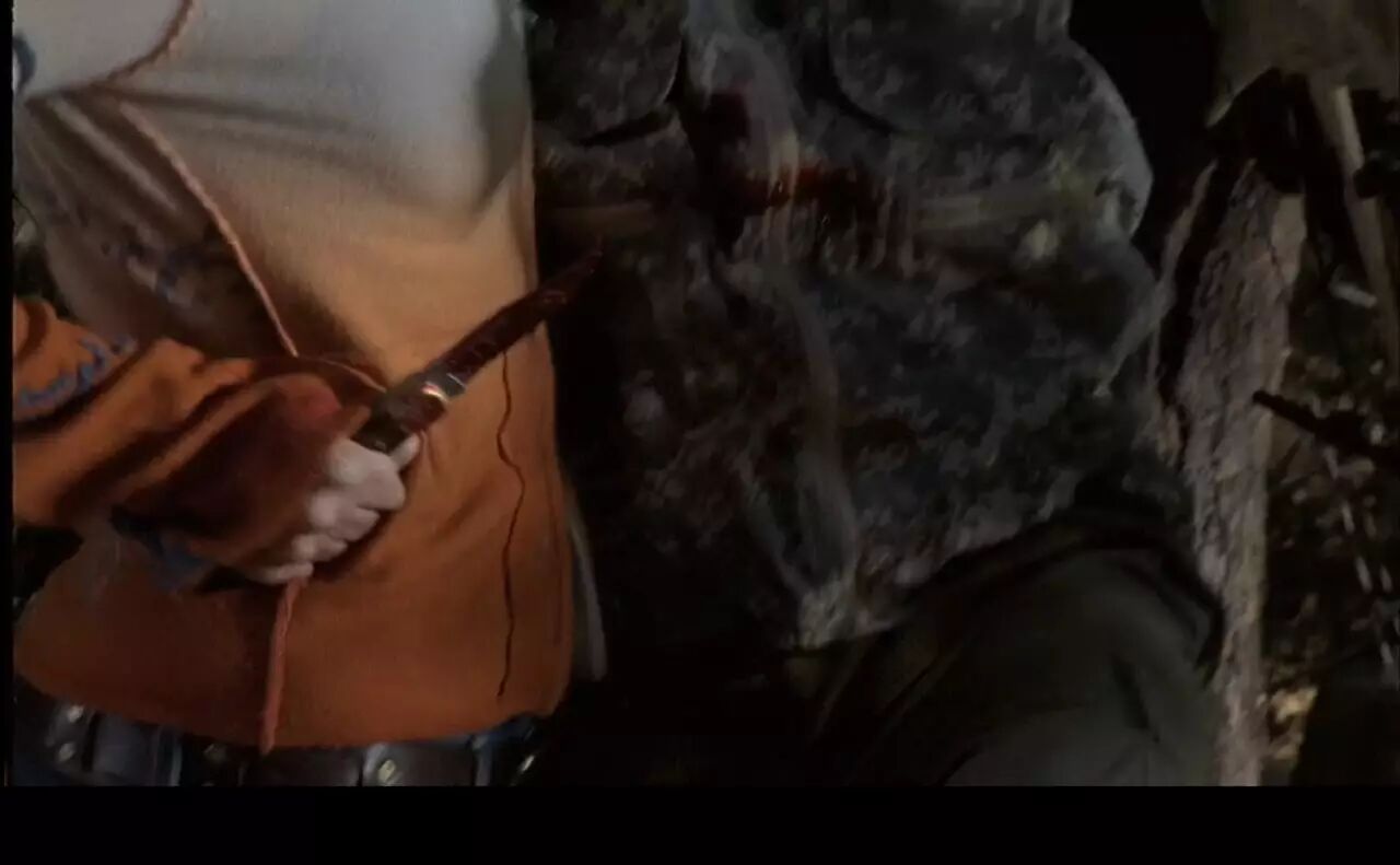 ▲ 女主藏在了树上,在哥哥经过的时候突然跳下来,用刀捅伤了他的肩膀。