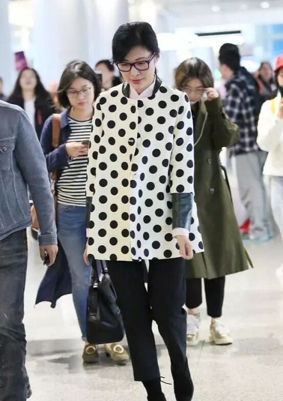 黑白相间的大波点外套充满青春气息,一幅黑框眼镜看上去又是那么的有书卷气。又一次选择外套搭配长裤出现的周涛,只不过换个了款式,却穿出了不一样的效果,看让去简直是文艺气质爆表!
