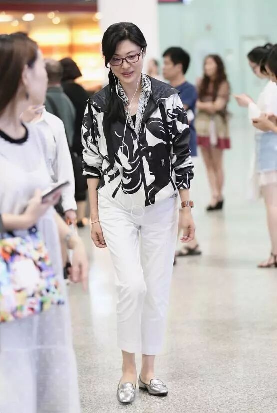一身质地优良的黑白连帽卫衣,颜色简约花样也相对简单,非常能够显示周涛的朴素与淡雅。白色九分裤和一又双银色平底鞋,完全就是普通市民的出街配置。可见周涛在私下里也应该非常具有亲和力。