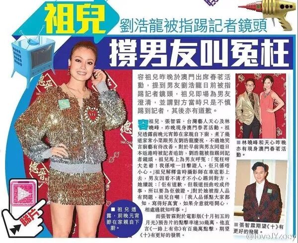 可经历此事之后的刘浩龙并没有让容祖儿省心,之后又有媒体爆料刘浩龙踢记者镜头。